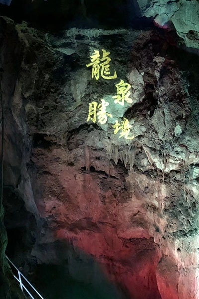 旅游即将接近尾声,下午坐上大巴来到了最后一个景点——宣州区水东镇的龙泉溶洞,洞壁有南宋开庆元年(1259年)徐士鸿题诗曰:“层层怪石几千年,曲折幽通趣自然。应有神龙腾云变,一逢春到满人间”。洞内盘旋曲折,壮丽非凡,钟乳、石笋、石柱比比皆是。怪石高台,形象多变,栩栩如生。一路而上,在半山腰出了洞口,胆大的同事还体验了一把“抖音同款”的高空秋千。